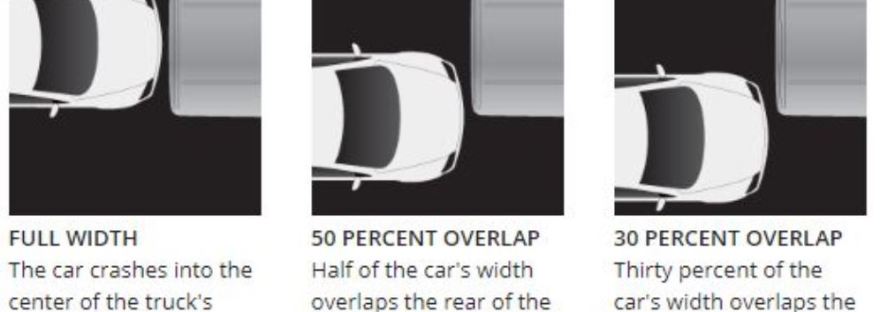 Nel 2011 la IIHS (insurance institute for highway safety) ha sviluppato i primi test atti a valutare l'efficacia dei sistemi antintrusione posteriori, installati sugli autocarri, evidenziando serie criticità in presenza di un certo offset tra i mezzi. Grazie agli sviluppi tecnologici prodotti in seguito, nel 2017 otto produttori di camion nordamericani sono stati premiati da IIHS per l'elevato livello di sicurezza garantito dai sistemi installati sui propri veicoli.